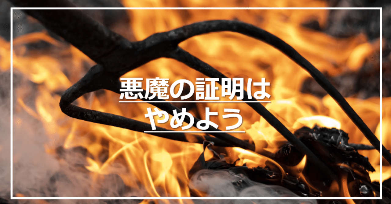 文字通り「『悪魔』の存在を証明しよう」という試みなのかもしれないが、「悪魔の証明」は、証明不可能な事案の例えた慣用句である。